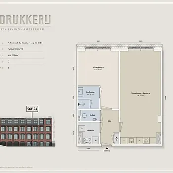 2 Kamers - Appartement - 68 m²1056, Amsterdam