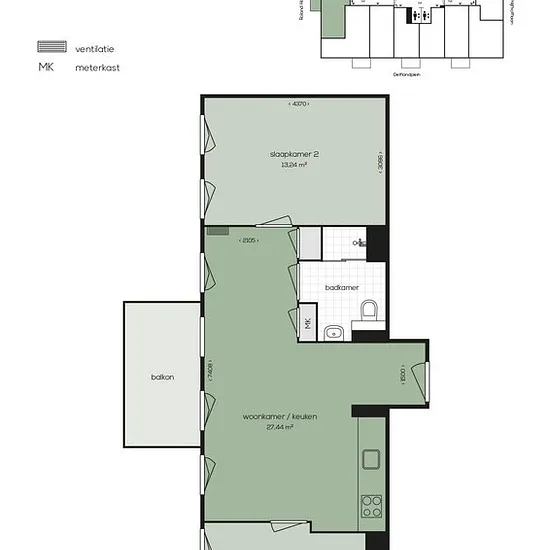 2 Kamers - Appartement - 61 m²2624, Delft