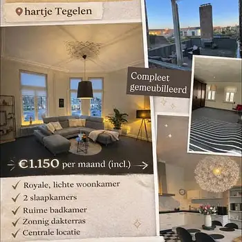 Huurwoningen van 65 m² kost dus gemiddeld € 1.109 per maand in Tegelen.