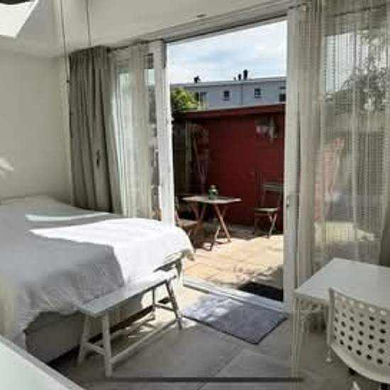 Are you looking for a cozy, fully equipped studio in a great location? This bright and charming studio might be exactly what you’re looking for! The studio comes with its own private entrance, a small garden, a bathroom with a bathtub, a table and coffee corner, plenty of closet space, a washing machine, freezer, fridge, and a little storage area. Best of all, it features a panoramic roof, allowing you to enjoy the starry night sky right from your bed. There is also a shared kitchen attached, fully equipped with everything you need, inclu...