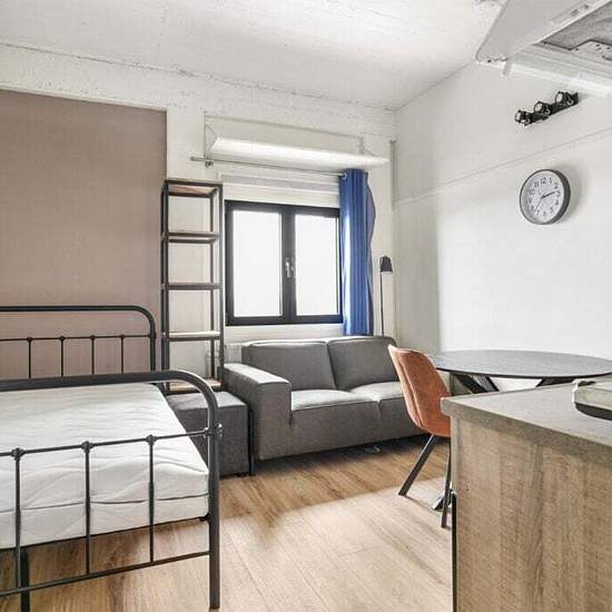 Zelfstandige studio te huur. Deze studio heeft een eigen badkamer en keuken. De ruimte is gestoffeerd en gemeubileerd, zodat je er direct in kunt trekken. Het complex biedt je ook gezamenlijke ruimtes waar je huisgenoten kunt ontmoeten, zoals een dakterras. Deze appartementen hebben een contract voor onbepaalde tijd. Daarnaast is er een wasserette aanwezig, waar je met de Pay2Wash app tegen betaling gebruik kunt maken van de was- en droogmachines. Behalve de huur, komen ook de nuts- en servicekosten voor je rekening. Wanneer er in het...