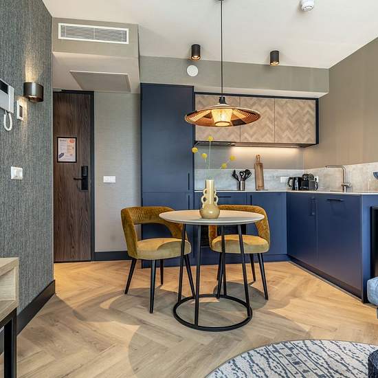 **SHORT-STAY ONLY** Comfortable, fully furnished one-bedroom apartment boasting an EnergyLabel A+++ in the heart of Delft’s historic city centre. Located on one of the most beautiful canals and only an 8-minute walk from Delft Central Station. Layout The building features a central lobby with a staffed reception, coffee lounge and free gym. From here you can access the lift and staircase to the apartments. This ground-floor one-bedroom apartment includes a fully equipped kitchen with a built-in washer/dryer. The living area is tastefully fur...