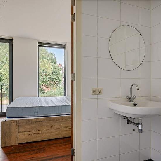 Om in aanmerking te komen voor deze woning kunt u zich alleen via de rode knop op de woningpagina op de website van fryslânhomes (.frl) aanmelden. Ruime ongemeubileerde studio met eigen badkamer en toilet aan de rand van Heerenveen. Om de hoek bij ijsstadion Thialf, Heidehof hotel, golfbaan en recreatiegebied Heidemeer. Ruime gratis parkeergelegenheid voor de deur. Er is een gemeenschappelijke keuken op de begane grond, op de eerste verdieping een ruimte met gemeenschappelijke wasmachine en wasdroger. Bijkomende kosten: servicekosten €100,- ...