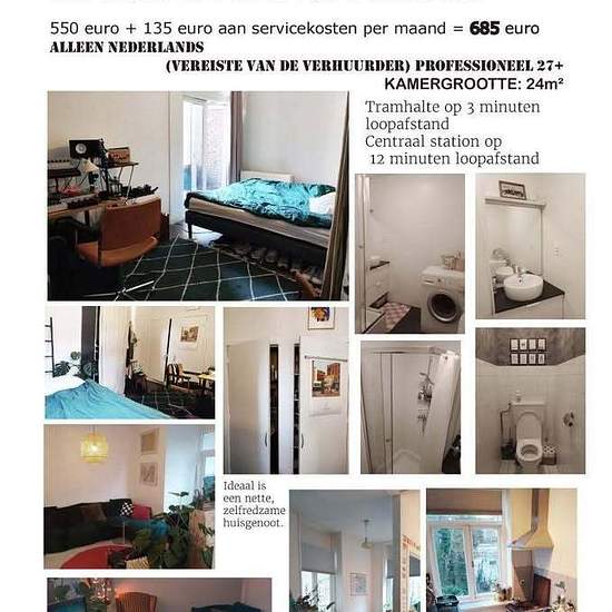 Text: Kamer beschikbaar! Huisgenoot gezocht (begin werkend) in mijn appartement aan de Bergweg. Je deelt het appartement alleen met mij (Britse vrouw, 27). De kamer is 24m2 met een balkon. De keuken, badkamer en toilet zijn gedeeld. Aan de woonkamer is een tweede balkon met avondzon. De huur bedraagt 550 euro, exclusief. Lijkt het je leuk om hier te komen wonen in het fijne noorden, op loopafstand van de supermarkt en vele leuke tentjes, stuur mij dan een berichtje (in English:) Thank you for your interest in the apartment. Please note that ...