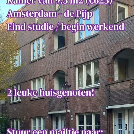 Hii, Ons lieve huisgenootje gaat een aantal maanden stage lopen in het buitenland en daarom zijn wij opzoek naar een onderhuurder van 15 maart tot en met juni. Ons appartementje ligt op de eerste verdieping aan het randje van de Pijp (een zijstraatje van de van Woustraat). We delen samen een woon-keuken en een badkamer en WC. Verder heeft het huis een vaatwasser en een wasmachine/droger. Ook hebben we een balkon. De kamer zelf is 9.5 vierkante meter. De huur is: 625incl. Je komt te wonen met 2 andere leuke meiden van 26 en 25 die begin...