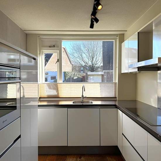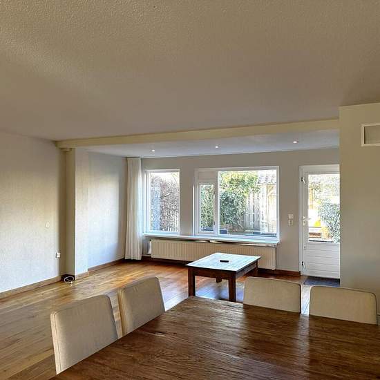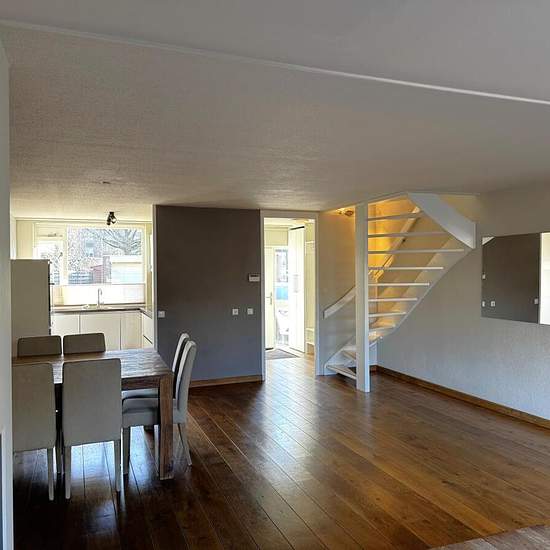 Well-maintained and spacious family home offered for rent in the Molenvliet neighborhood of Woerden. This semi furnished property has four bedrooms and a west-facing backyard. Woerden's city center and train station are just a few minutes away. Major roads, including the A12 highway, are easily accessible by car.Ground floor:The front door leads to the hall with the meter cupboard, a storage cupboard, access to the living room, and the staircase to the first floor. The living room is spacious thanks to an extension at the rear. There is a ga...
