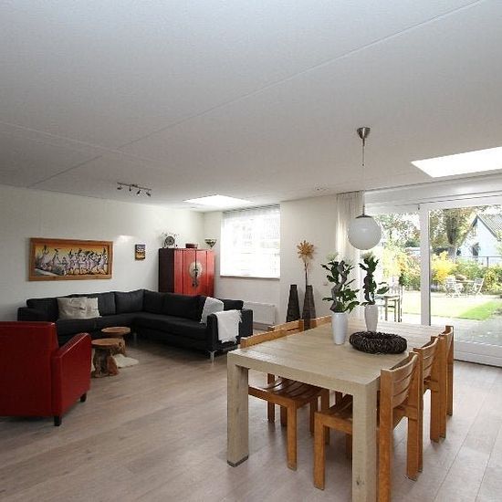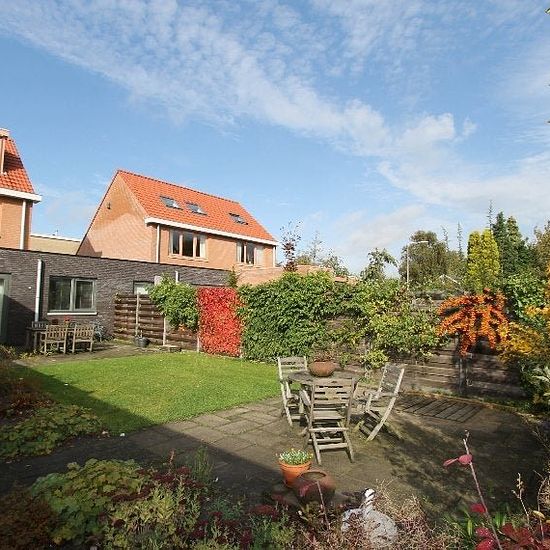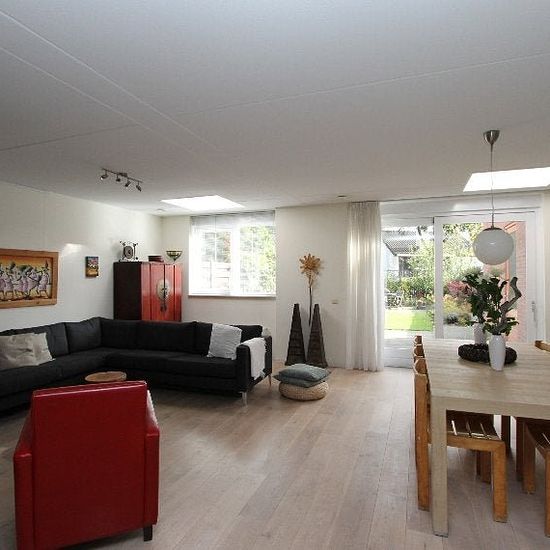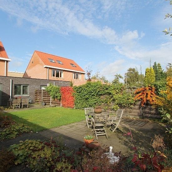 Woonoppervlakte: 142 m2, Inhoud: 400 m3, Aantal kamers: 4, Aantal slaapkamers: 3 Deze fraaie gestoffeerde twee onder één kapwoning heeft een riante woonkamer met moderne open keuken. Begane grond: Voortuin met eigen oprit en laadmogelijkheid. Hal/entree met hangend toilet en inloopkast. Lichte zeer ruime woonkamer voorzien van lichtkoepels. Open keuken met vaatwasser, gaskookplaat, combimagnetron, koel-vriescombinatie en afzuigkap. Schuifpui naar de zonnige en zeer grote tuin op het zuidwesten. Ruime berging en eigen garage zijn vanuit de ...