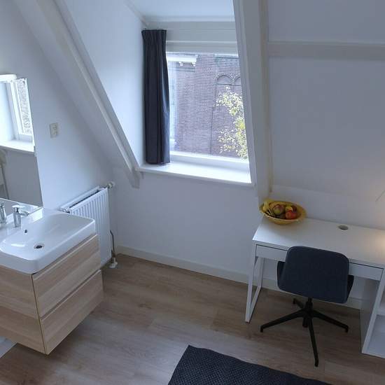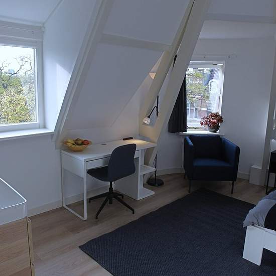 Nice and furnished room with shared kitchen, toilet and shower. Ideally situated in the beautiful and safe neighbourhood of Kralingen (eastern side of Rotterdam). Lay out: The room is based on the second floor of a large house. The house has four rooms on this floor. There is a small kitchenette on the same floor to be shared with 3 other decent tenants. And a bigger kitchen on the first floor to be shared with 5 others. The shower and toilet are shared with 3 others. The room and shared facilities are being cleaned by the cleaning lady week...