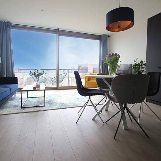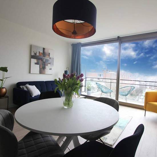 Attention if you want to schedue a viewing ONLY apply via the websites or per email and leave some info about your profile. On a fantastic location, a quiet street near the Amstel river we offer a NEWLY BUILT (2022) 1 bedroom apartment, with sunny terrace and a stunning view over the city! The energy label is A+++ This apartment is located on the top floor, accessible by elevator. Layout: With the elevator to the top floor, entrance, hallway, comfortable bedroom with double bed and large wardrobe, luxurious new bathroom with rain shower, ...