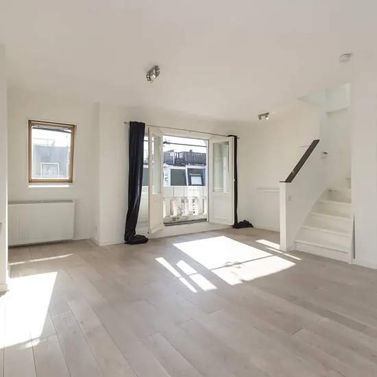 Unfurnished one-bedroom apartment of 60 m² with a spacious 40 m² private roof terrace, located on Duivelseiland near De Pijp and Museumplein. The apartment is currently undergoing partial renovation and will be delivered in a fresh and well-maintained condition for the new occupant. The bright and spacious living room with open kitchen benefits from abundant natural light thanks to large windows and a skylight. The private roof terrace offers stunning views over the city. The surrounding neighborhood is characterized by stately buildings wit...