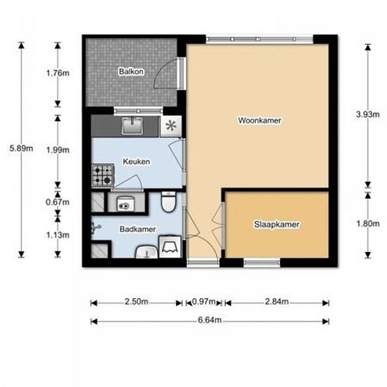 2 kamer appartement in Amsterdam