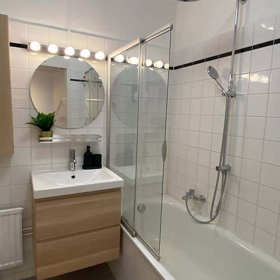 In this 60 m2, 2-room apartment on the 5th floor, located right across the Haarlem Central Station, you will enjoy the best of Haarlem! The apartment is stylishly fully furnished, so you can, turn key, move right in! A unique location just 200 meters from the central station and the shopping heart of Haarlem! LAYOUT Ground floor: communal entrance and two elevators; access to the 1st (bicycle) storage (2.58 x 1.37) with electricity. 5th Floor: entrance to the apartment; spacious hallway; a separate toilet with hand basin; modernized bathroom...