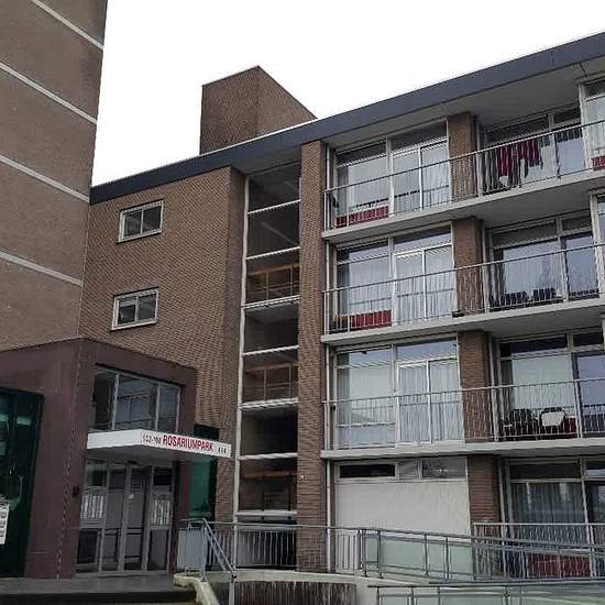 Seniorenappartement gelegen naast het verzorgingshuis Rosariumhorst Appartement is gelegen op de 2e etage . U heeft geen direct toegang tot de straat U gaat via een galerij naar uw woning Entree hal Toegang tot de lichte woonkamer Vanuit de gang heeft u toegang tot de slaapkamer/berging, keuken, woonkamer en badkamer Vanuit de woonkamer heeft u toegang tot de grote slaapkamer. Balkon vanuit de slaapkamer bereikbaar. Balkon gelegen op het zuiden vanuit de slaapkamer heeft u tevens toegang tot de badkamer dit ivm eventuele zorg die u nodig zo...