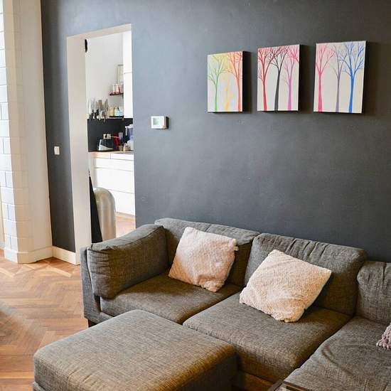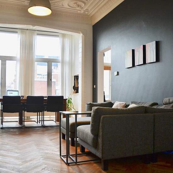 Chic and stately apartment in the historic Zeeheldenkwartier, with balcony and fully renovated with design elements. A unique apartment in the vibrant heart of The Hague. The apartment features beautiful fish bone parquet flooring, magnificent ornament ceilings and original details, original fire places, a modern kitchen fitted with all comforts and luxurious bathroom. The apartment comes with design furnishing, expansive windows and a sunny balcony. Layout Stairs to the first floor. Entrance into bright and warm living room with fire place,...