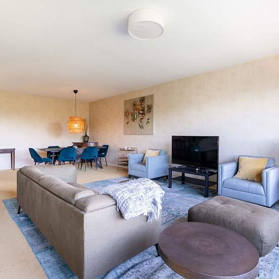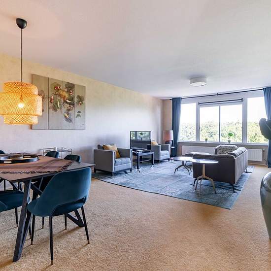 Fully furnished one bedroom apartment with stunning view, located in the popular Benoordenhout area, within easy reach from many international organizations (ICC NATO), highways, parcs and shops. Lay-out: Entrance, elevator and stairway, entrance apartment on 6th floor. Hall with videophone system and acces to all the rooms, large kitchen with sunny balcony with views over skyline of the Hague. Also on the backside a Very spacious bedroom with large built-in wardrobes and a workspace in the corner. This room also provides access to the sunny...