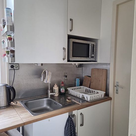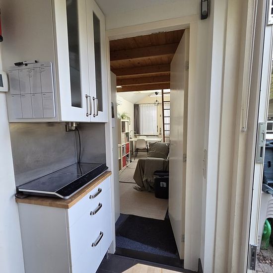 Alleen voor een student: Kamer (studio) in een rustige woonwijk. Eigen opgang (geen eigen huisnummer), gedeelde keuken, gedeelde badkamer/WC. Hoge ruimte met hoogslaper, gestoffeerd (vloerbedekking, gordijnen, airco) en gemeubileerd (kledingkast, tweezitsbankje, bureau, twee stoelen, opbergmeubel, hoogslaper met goed en recent matras en wasbare topper). Compacte keuken met koelkast, combimagnetron, kookplaat, pannen, borden, glazen, bestek etc. Nette badkamer met douche, wastafel en toilet. Totaal 20 m2. Heel dichtbij universiteit (1km), ...