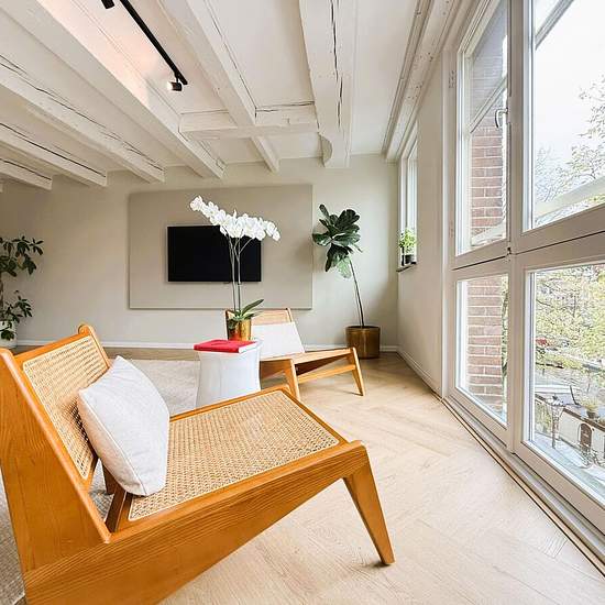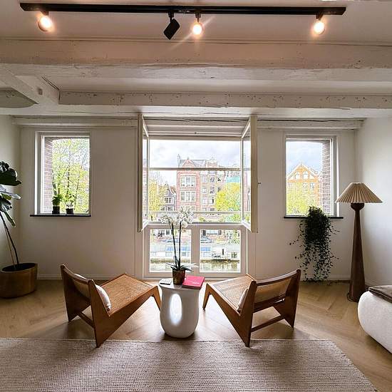 Aan de rand van de gezellige Jordaan, met prachtig uitzicht over de Prinsengracht, bieden wij dit hoogwaardig gerenoveerde en volledig gemeubileerde appartement aan. De woning is stijlvol ingericht met oog voor detail en combineert modern comfort met de authentieke sfeer van de Amsterdamse binnenstad. Indeling: De lichte woonkamer aan de voorzijde biedt een schitterend uitzicht over de gracht. De open keuken is zeer luxe uitgevoerd en voorzien van hoogwaardige inbouwapparatuur, waaronder een vaatwasser, combioven, inductiekookplaat met geïnt...