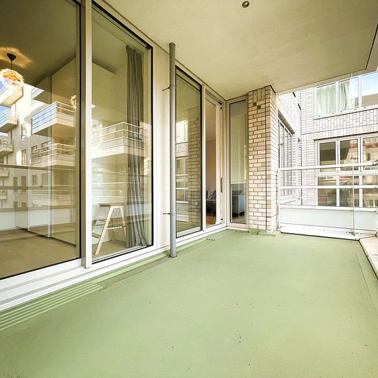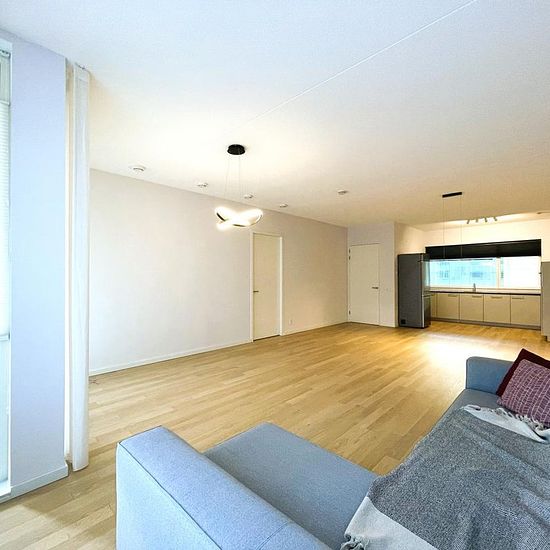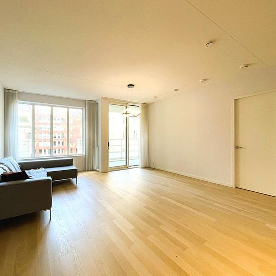 This modern 2 bedroom apartment is part of the luxury apartment complex 'Intermezzo' in the business district ‘Zuidas’. In the central hallway at the main entrance a concierge is available for various services. This apartment is only a 5-minute walk from Amsterdam Zuid (south) train station with a very frequent connection to Schiphol Airport and downtown Amsterdam.Layout: Main entrance with a concierge. Elevator to 3rd floor. Entrance to the apartment into the hallway with a separate toilet. Bright living room with large windows and slid...