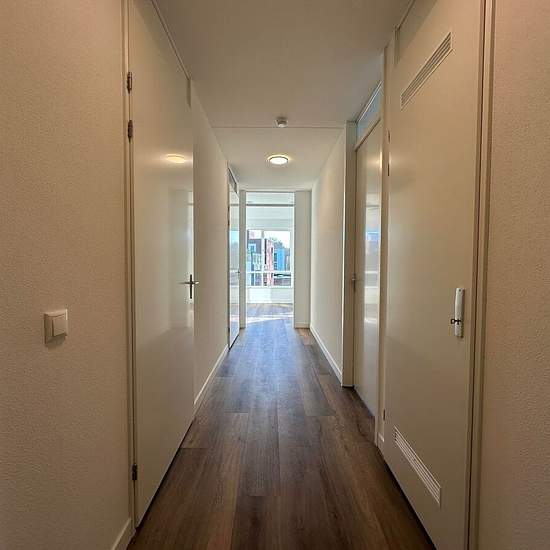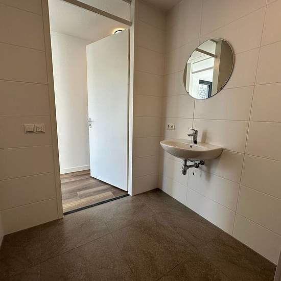 In the center of Geldrop lies this newly completed apartment complex. The upholstered 3-room apartment is located on the first floor and features 1 very spacious bedroom and a small bedroom, an indoor parking space, and storage room. ENERGY LABEL A++; NEWLY BUILD; PRIVATE PARKING. Layout: Communal entrance of the apartment complex with doorbell panel, mailboxes, video intercom, and staircase and elevator access to the floors. First floor: Access to the apartment entrance via gallery. Very spacious hallway with access to all rooms. Bedroom 1 ...