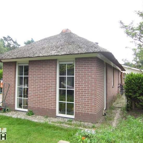 ONLANGS VERHUURD Rietgedekte recreatiewoning van ca. 65m2 te huur nabij Harderwijk en Ermelo. Deze sfeervolle woning staat op een rustig park nabij bos en heide met vele wandel- en fietsroutes. Adres bij benadering inzake privacy. Slechts 10 minuten fietsen naar Station Harderwijk, 12 minuten naar de binnenstad, op 10 minuten van Albert Heijn Ermelo en op 2 autominuten van de A28. Indeling: Entree Hal Woonkamer met openslaande deuren naar het overdekt terras Open keuken Slaapkamer 1 Badkamer met wastafel, douche en aansluiting droger en wasm...