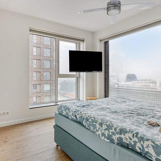 Furnished 2-bedroom apartment with spectacular views over the river Maas! Experience high-level living with a unique panoramic view over the Maas. This stylish and fully furnished 2-bedroom apartment offers everything you need. With a spacious terrace, large widows, and a private parking space, it is the ideal home for anyone seeking comfort and luxury in the vibrant city of Rotterdam. The apartment is located in the modern residential building 'Boston', known for its architecture and abundance of natural light. The location is perfect: with...
