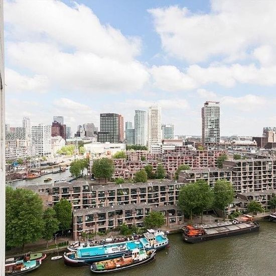 Living on height with this beautiful two-bedroom apartment at Boompjes Boompjes 610 is situated in a prime A-location in the heart of Rotterdam. From home, you can easily walk to the cozy terraces and restaurants of the Oude Haven or enjoy culinary hotspots and markets in the iconic Markthal. The shops of the Koopgoot and the charming streets around Witte de Withstraat are also just a short walk away. For relaxation, stroll along the Maas or cross the bridge towards the vibrant Kop van Zuid. The location is excellently connected. By car, you...