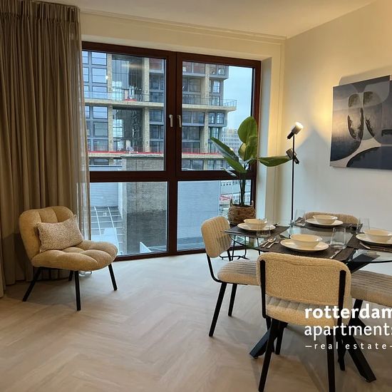 Volledig gemeubileerd 2-slaapkamer appartement gelegen op de 7e en 8e verdieping van een modern nieuwbouwcomplex in Downtown Baan. Dit prachtige appartement biedt een luxe en comfortabele woonruimte. De woning is voorzien van vloerverwarming en verkoeling, hoogwaardige afwerking en beschikt over 2 balkons met een prachtig uitzicht over de stad. Het appartement is gelegen in Downtown Baan, een dynamische en populaire wijk in het hart van Rotterdam. Het biedt een centrale ligging, op loopafstand van winkels, restaurants, en leuke cafés. Het op...