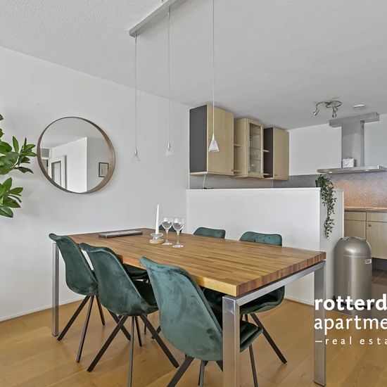 Ggemeubileerd 3 kamer appartement op de 10e verdieping (met optionele gebruik van de beveiligde parkeerplaats) in het centrum van Rotterdam aan de Maas en de beroemde "Erasmusbrug". Op loopafstand van de chique en lokale restaurants, winkels, musea, het "Luxor Theater" en het stadscentrum. Tramlijnen 7, 8, 23 en 25 lopen naar het Centraal Station. Metrostation `Leuvenhaven` welke op loopafstand is gelegen biedt een directe verbinding met Den Haag Centraal. Indeling: Gemeenschappelijke beveiligde entree op de begane grond met beltableau, brie...