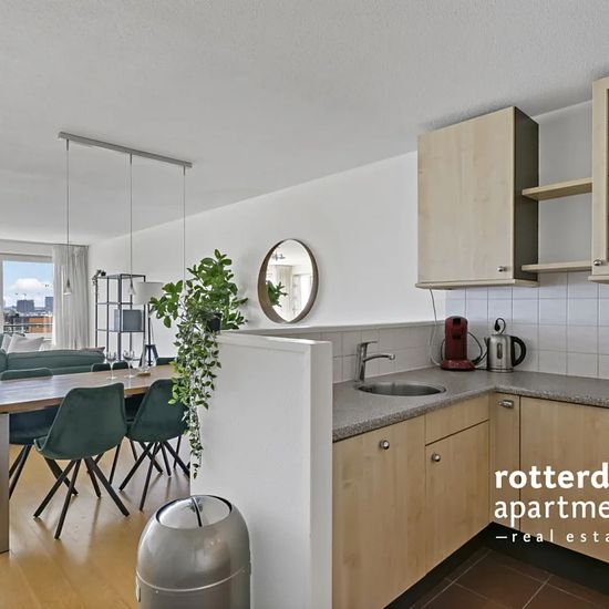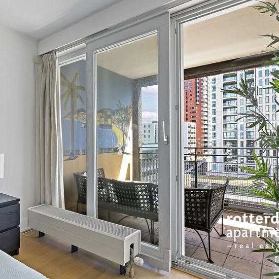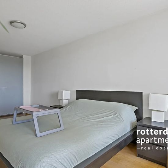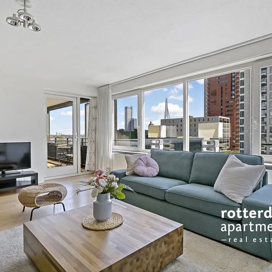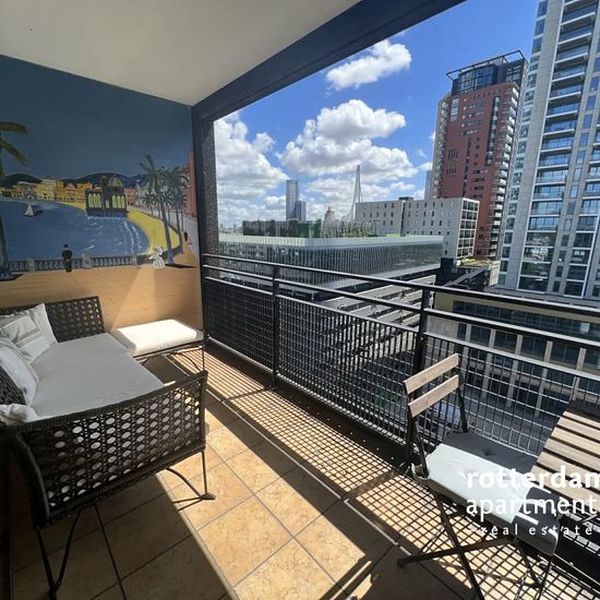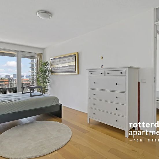 Ggemeubileerd 3 kamer appartement op de 10e verdieping (met optionele gebruik van de beveiligde parkeerplaats) in het centrum van Rotterdam aan de Maas en de beroemde "Erasmusbrug". Op loopafstand van de chique en lokale restaurants, winkels, musea, het "Luxor Theater" en het stadscentrum. Tramlijnen 7, 8, 23 en 25 lopen naar het Centraal Station. Metrostation `Leuvenhaven` welke op loopafstand is gelegen biedt een directe verbinding met Den Haag Centraal. Indeling: Gemeenschappelijke beveiligde entree op de begane grond met beltableau, brie...