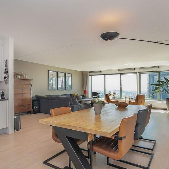 Op de 21e verdieping van "La Fenetre", met een werkelijk adembenemend uitzicht over het Bezuidenhout, het Haagse Bos en het spoor, richting Rotterdam, de Nieuwe Waterweg en zelfs Meijendel en de zee ligt dit luxe, fraai loft-achtig 3-kamer appartement met riant, beschut terras, living van bijna 70 (!) m2 met open keuken, twee slaapkamers, moderne badkamer en parkeerplaats in de onderliggende parkeerkelder. "La Fenetre" is een prachtige woontoren aan de rand van het Centrum van Den Haag naast de Koninklijke Bibliotheek en het Centraal Station...