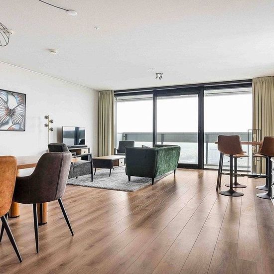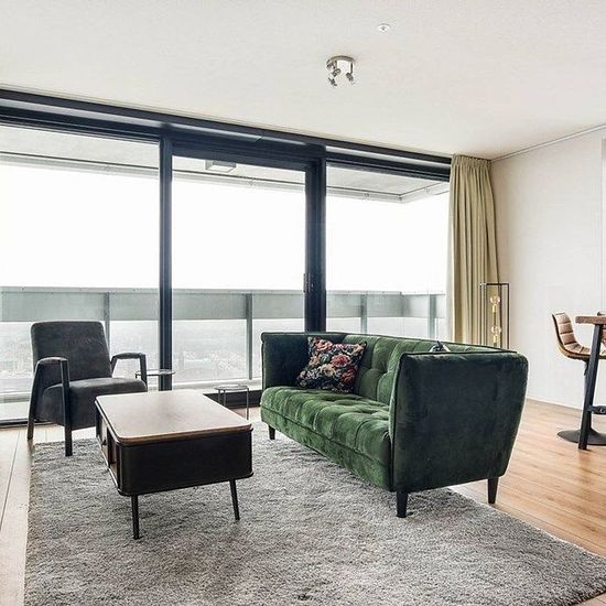 Nicely decorated and luxurious apartment of 100 square meters on the 35th floor of the New Babylon City Tower with an amazing view towards the beach and sea of Scheveningen. You will not find a more central location in The Hague, everything you need is easy to reach. Central Station (trains, trams, and busses) is only a minute's walk, A12 and A4 can easily be reached and The Hague Forest is in front of the apartment complex. New Babylon is a multi-functional complex that consists of two residential towers, an office and leisure center, a ho...
