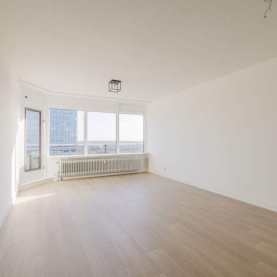 Ruim gerenoveerd 3-kamer appartement (woonoppervlakte 90 m2) met balkon op het oosten en ruime berging in de onderbouw beschikbaar per direct voor onbepaalde tijd voor €2.195,- per maand exclusief. Het appartement bevindt zich op de 13e verdieping en is o.a. voorzien van een lichte 'eikenhouten look' laminaatvloer, gestucte wandafwerking, luxe open keuken, twee slaapkamers, geheel betegelde badkamer en een separaat toilet. De gestoffeerde en luxe afgewerkte woning is gelegen aan de zuidkant van de stad. Het gebouw is goed onderhouden en voor...