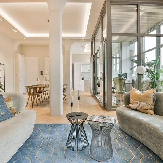 *ENGLISH TRANSLATION BELOW* Onder architectuur ontworpen en ingericht appartement met lift in de voormalige diamantslijperij in de Pijp. Het oorspronkelijke gebouw uit 1907 is ontworpen door Gerrit van Arkel en nu getransformeerd tot een multifunctioneel gebouw. Het gehele appartement is Domotica gestuurd. De Diamantfabriek ligt in de Pijp met veel leuke winkels, restaurants en cafés en natuurlijk de dagelijkse Albert Cuyp markt. De Amstel ligt om de hoek. Het openbaar vervoer is uitstekend met veel tram en busverbindingen en een metrostatio...