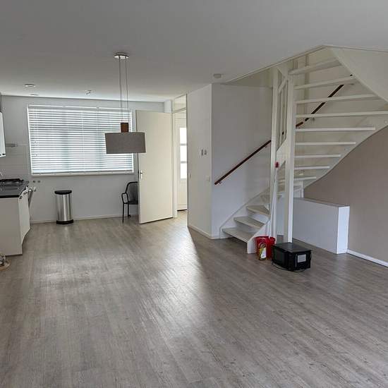 Op prachtige locatie nabij winkels en scholen gelegen prachtige tussenwoning voorzien van energielabel A met 4 kamers en ruime tuin met berging. Indeling Begane grond: Hal, meterkast, zwevend toilet, woonkamer voorzien van pvc vloer met vloerverwarming, open keuken voorzien van 4-pits gaskookplaat, rvs-afzuigkap, koelkast en vaatwasser. 1e verdieping: Overloop en 3 slaapkamers (voorzien van pvc vloer met vloerverwarming ), een luxe badkamer voorzien van inloopdouche, zwevend toilet en wastafel. 2e verdieping: Ruime open zolder, via een vaste...