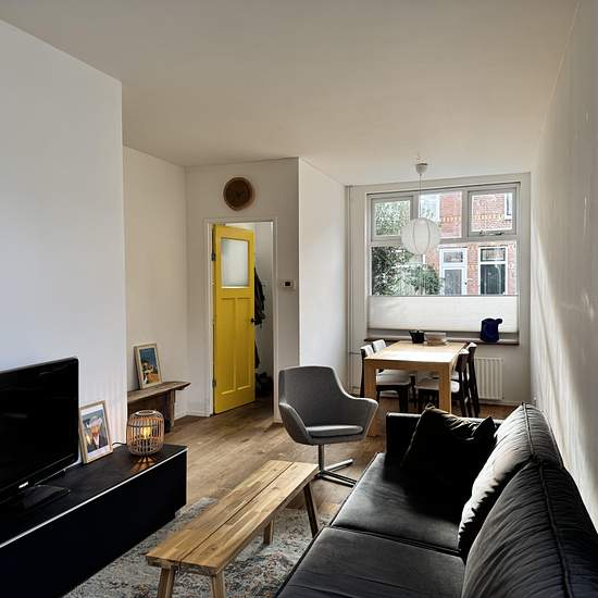 Gestoffeerde charmante eindwoning uit circa 1910 te huur aangeboden. Deze stadswoning ligt in de gewilde Bloemenbuurt, heeft 2 slaapkamers en een ruime berging/werkkamer. De woning ligt op fietsafstand van het centrum, nabij winkels, het treinstation en diverse uitvalswegen.Begane grond: Via de voordeur is de hal te bereiken die toegang biedt tot de sfeervolle woonkamer. Doordat de woning op de hoek ligt is er veel lichtinval door de raampartijen aan zowel de voorzijde als de zijkant. aan de achterzijde is de keuken gesitueerd die is voorzie...