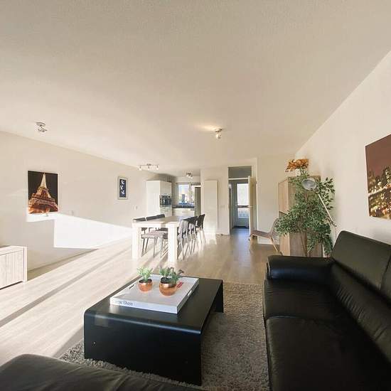 This modern, fully furnished family home with 4 bedrooms, sunny garden and two bathrooms is located in a quiet, green neighbourhood of Amstelveen. Here you can enjoy comfort, space and excellent accessibility.Entrance hall with toilet and access to the bright, spacious living room. The living room has large sliding doors to the south-facing back garden, creating a seamless transition between indoors and outdoors. At the rear is the modern open kitchen, equipped with all necessary appliances such as a fridge with freezer, combi-oven, dishwash...