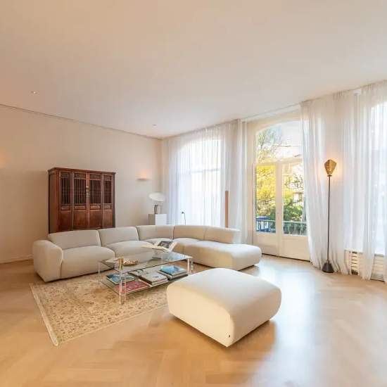 Tesselschadestraat 9B, 1054 ET Amsterdam *** ELEGANT URBAN LIVING WITHIN WALKING DISTANCE OF THE VONDELPARK *** A spacious and bright townhouse with an elevator and a sunny terrace overlooking the Vondelpark. This luxurious apartment with 182 m2 of living space and exceptionally high ceilings comprises a living room, dining area, kitchen, terrace, 3 bedrooms and 2 bathrooms. SURROUNDINGS The apartment is located in one of Amsterdam’s most sought-after neighbourhoods, with the iconic Vondelpark around the corner. This elegant and quiet street...