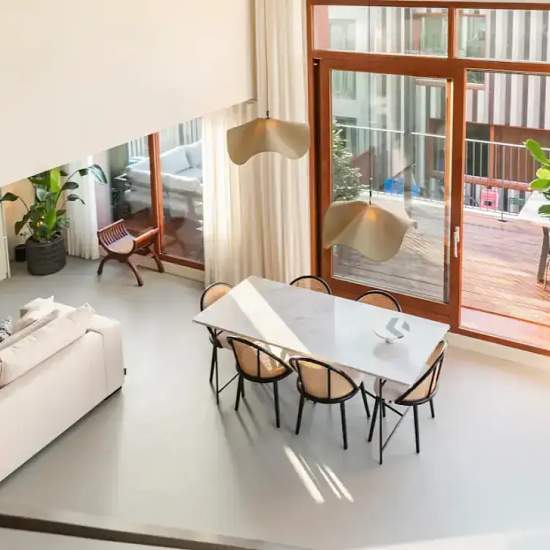 Ideaal voor expat professionals en (internationale) gezinnen, gemeubileerd aangeboden (gestoffeerd is bespreekbaar), beschikbaar per 1 maart 2026 (diplomatenclausule, met mogelijkheid tot verlenging). Unieke en stijlvolle design loft van circa 145 m² met 4 slaapkamers, een ruim zonnig balkon op het zuidwesten (ca. 20 m²) en een privé overdekte parkeerplaats met laadmogelijkheid, gelegen in het populaire Buiksloterham in Amsterdam-Noord. Wist je dat je ook zelf een bezichtiging kunt plannen? Klik op de oranje button en ontvang direct een link...