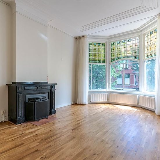 Prachtig karakteristiek gestoffeerd 3-laags bovenhuis met een groot terras van ca. 42 m² op de woonverdieping gelegen in het hart van het Statenkwartier en de Internationale Zone. Entree, trap naar 1e etage, hal, ruim toilet met fonteintje, prachtige kamers en suite met aan de voorzijde een erker met fraai glas in lood, toegang naar de voorzijkamer, suiteseparatie met kasten en schuifdeuren eveneens met fraai glas in lood, luxe ruime half open keuken met eethoek, Boretti fornuis en oven, afzuigkap, vaatwasser, magnetron, Amerikaanse koelkast...