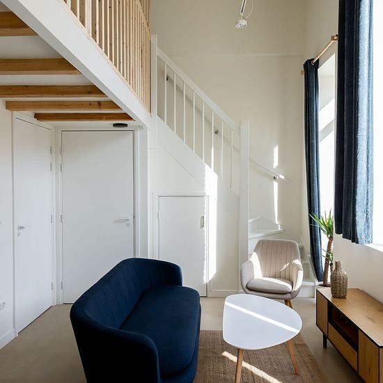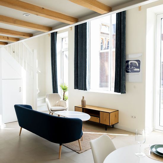 In the heart of Delft, three monumental buildings are being transformed into 32 modernized and energy-efficient apartments. The apartments vary in living area from approximately 42 to 97 m², are move-in ready, and fully furnished. Candidates are only eligible if they meet the profile description, which will be provided upon request. The photos show an apartment on 21V, which is immediately available. The apartment has an area of 48.5 m² and features a living room with an open kitchen, a bedroom, and a bathroom with a toilet. The apartment...