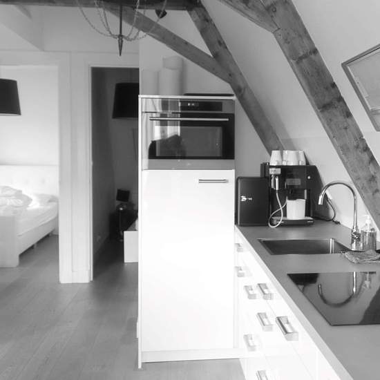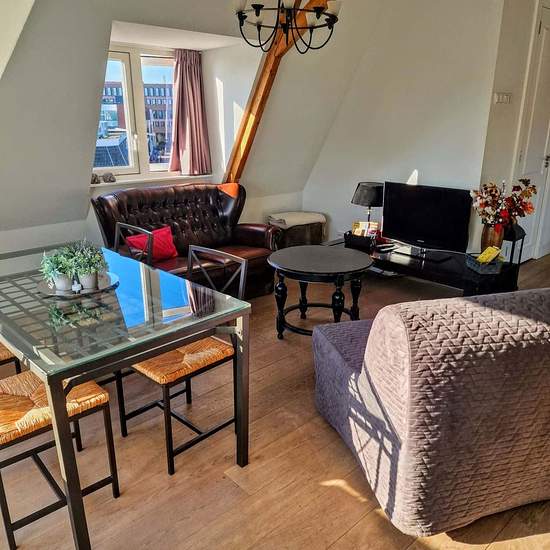 We are not a regular hotel! Booking with us you rent a complete apartment with all conveniences. A lovely stay in full privacy. The building was completely renovated in 2016 and divided into 7 apartments. Private kitchen, private modern bathroom, balcony or terrace. Right in the heart of the city center of Haarlem. Loft G is a perfect loft to sit back and relax. The loft is furnished with a zen and soothing style. The wooden beams on the ceiling gives the loft a warm, inviting and comfortable appearance. The apartment has a total area of 50 ...