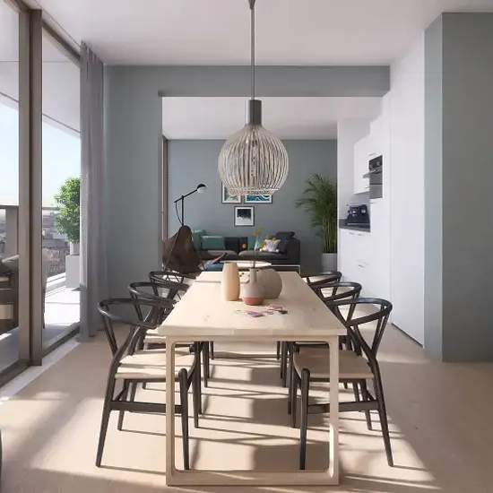 Laan op Zuid 1067 A, studio on the 5th floor Property type E Area 45 m2 Basic rent per month €988.95 Service charges per month €75 PVC flooring supplement per month €29.00 The apartments exude luxury. The finishes are carried out with care and attention, using only durable, high-quality materials. The floor-to-ceiling windows let daylight in and enhance the sense of space. Thanks to the clever layout, almost every apartment has a spacious balcony. The homes are delivered as standard with wallpaper and PVC flooring. That saves you DIY work a...