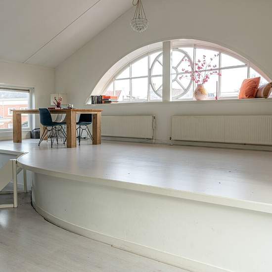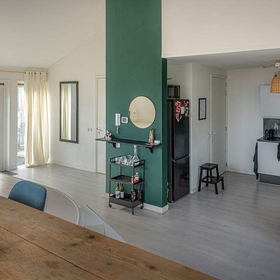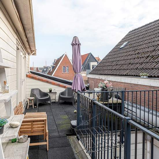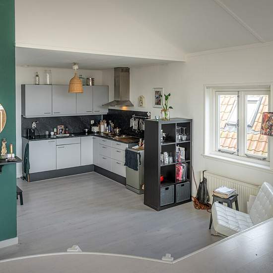 To be eligible for this property you can only apply via the red button on the property page of the fryslânhomes website (.frl). Characterful upper-floor apartment in the heart of Sneek. This apartment combines authentic details with modern living comfort and overlooks the Singel. The vibrant town center is within walking distance. Layout: central hall with staircase leading to the apartment. Entrance with storage room, spacious living room with open kitchen fitted with built-in appliances. For outdoor enthusiasts there is a private roof terr...