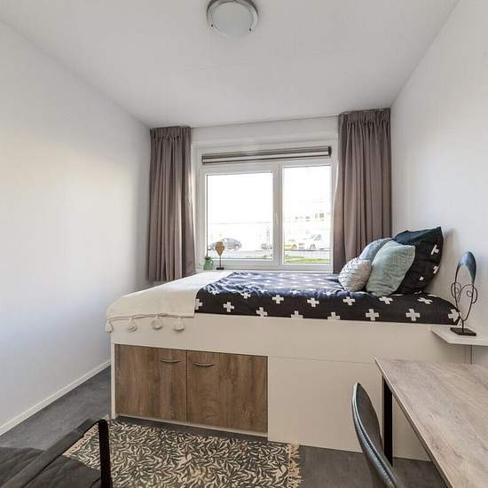 Self-contained studio for students available for an indefinite period. Are you looking for a rental in Utrecht? Located on the Utrecht Science Park. By tram you can be at Utrecht Central within 12 minutes. The studio is fully fitted and furnished with a bed, desk, bathroom and kitchen. The building has several communal areas including a lounge area, study spaces, a library and a cinema. There is also an outdoor area with picnic tables. In addition, there is a laundrette on site where you can, for a fee, use the washing and drying machines v...