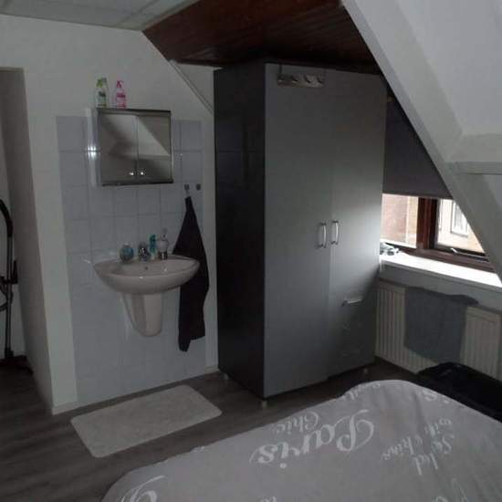 Apartment on the 2nd floor. Living room approx. 25 m², bedroom approx. 12 m² with fixed sink, toilet, bathroom with fixed sink and shower cabin. Kitchen approx. 6 m². Roof terrace shared with the resident of the neighboring apartment. Our preference is for a single person aged 40+ with a permanent job. Shared use of washing machine/dryer. Laminate flooring to be taken over. For rent and to be occupied exclusively by a one-person household. Bicycle storage available. No pets. Rent €1,107.50 is including utilities (gas, water, electricity) and...