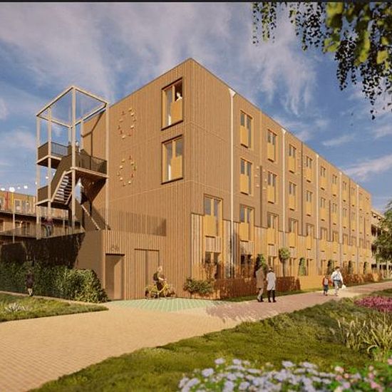 At Sportpark Poelenburg, Parteon and Rochdale, in cooperation with the municipality of Zaanstad, will realize 172 social rental homes in 2026. The homes are divided over 3 residential buildings, each with four residential floors, 1 block with 3 residential floors where the bottom residential floor is a common space, and 1 block of two ground-level houses. There is an inner garden. The area The Sports Park is located 2 minutes by bike from Poelenburg. Besides a public transport hub (OV-Hub), the sports fields, a park, and a gas station, the...