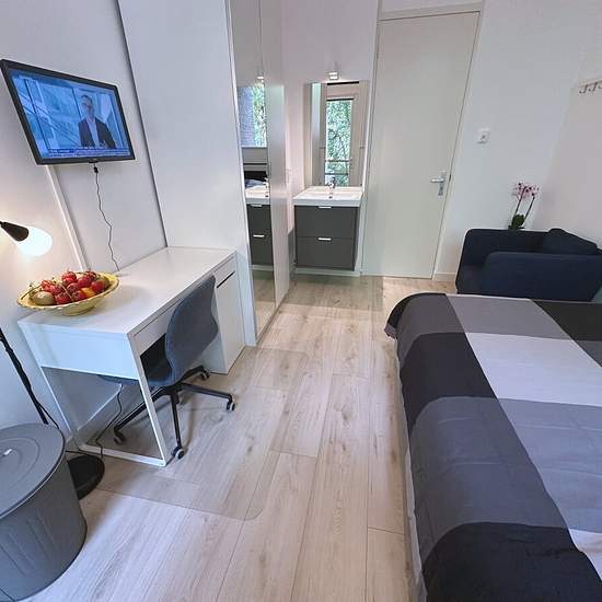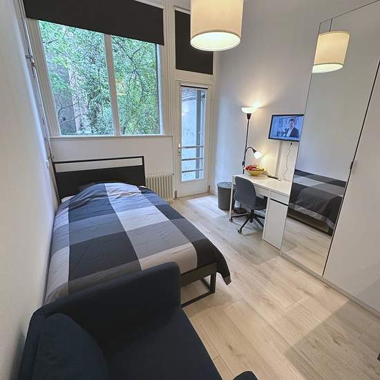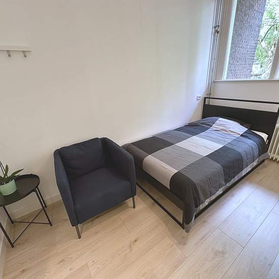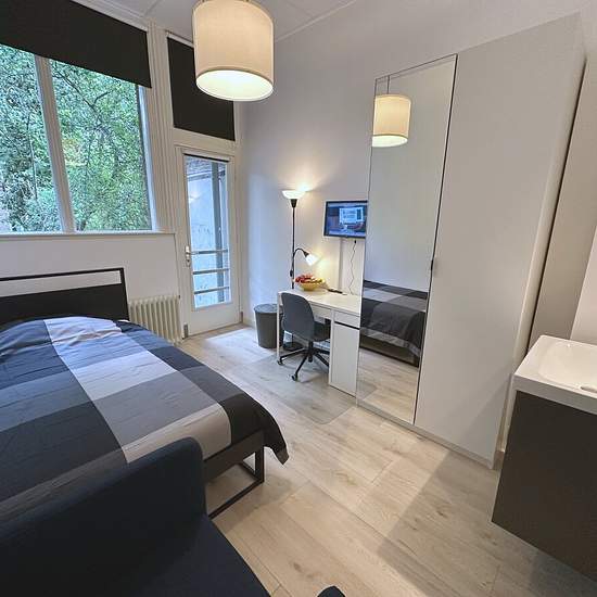 Nice and furnished room with shared kitchen, toilet and shower. Ideally situated in the beautiful and safe neighbourhood of Kralingen (eastern side of Rotterdam). Lay out: The room is based on the ground floor of a large house. The house has 1 room and 2 studios on this floor. The kitchen and bathroom are shared with 2 other decent tenants. The room and shared facilities are being cleaned by the cleaning lady weekly. There is a washing machine and dryer for shared use (paid, with a coin machine). Location: Rotterdam-Kralingen is one of the m...