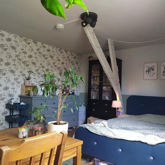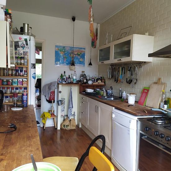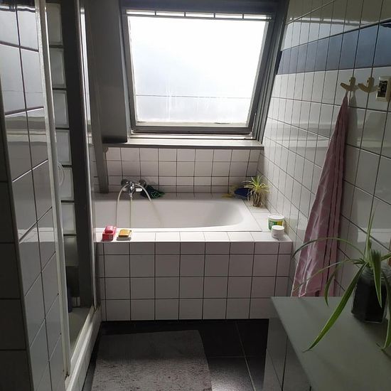 Fairly spacious room on the second and top floor. Quiet house and quiet neighborhood with everything within walking distance (supermarkets, bike repair shops, thrift store, electronics, locksmith, etc.). BSc and MSc students plus working people. For the past few years half Dutch, half international. Recently no longer half man, half woman but mostly man, which could possibly change. We have a large garden with tiles, greenery, bikes, tables, chairs, and stubborn blackberry bushes. In the summer, we occasionally make a fire.