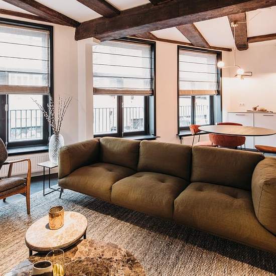 Beautifully designed apartment fully furnished by Nicemakers — an award-winning styling agency known, among others, for the Hoxton Hotel on the Herengracht. High-end furnished 1-bedroom apartment of approximately 63.6 m2 on the first floor. The furnished apartment stands out for its use of colors and rich materials in line with the latest interior trends. The open kitchen is fitted with built-in appliances such as a dishwasher, oven and fridge-freezer. All household appliances such as Nespresso, juicer and all other kitchen essentials are a...