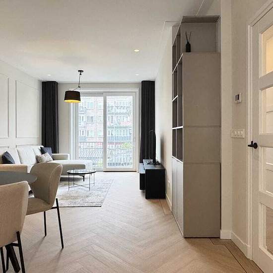 Discover this newly renovated apartment on the first floor of Chasséstraat in Amsterdam. This fully furnished apartment of 71 sq.m. offers two bedrooms, one sleek bathroom, a separate toilet, a modern living room, and an open contemporary kitchen equipped with built-in appliances. The apartment is furnished with high-quality designer furniture, carefully selected to create a calm, modern, and comfortable living environment. From both the living room and the kitchen, you have access to a pleasant balcony. The entire apartment is fitted with u...